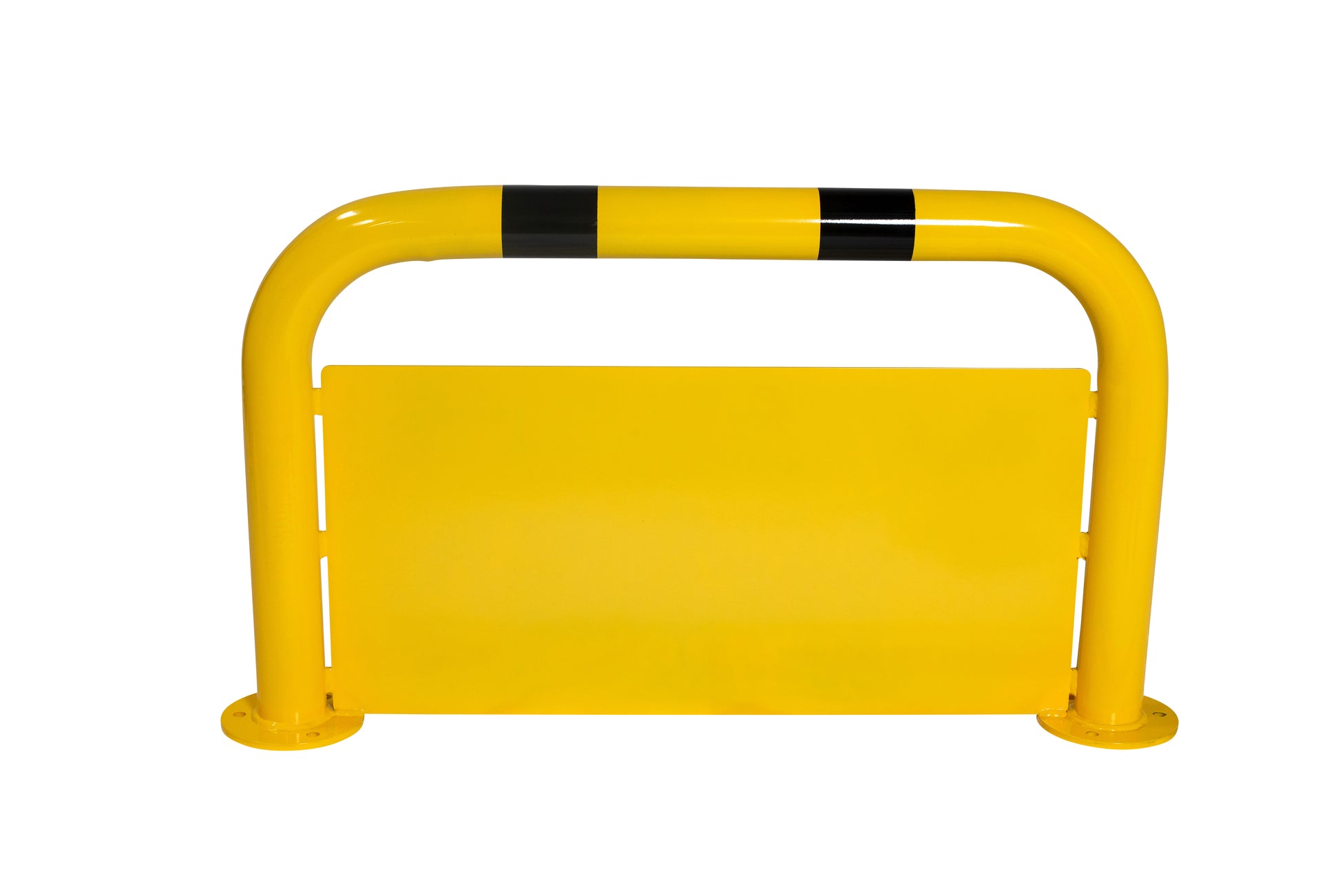 Dank der Pulverbeschichtung in RAL 1018 (Gelb) und der auffälligen schwarzen Warnmarkierung erhöhen diese Bügel die Sichtbarkeit und tragen so aktiv zur Unfallvermeidung bei.
