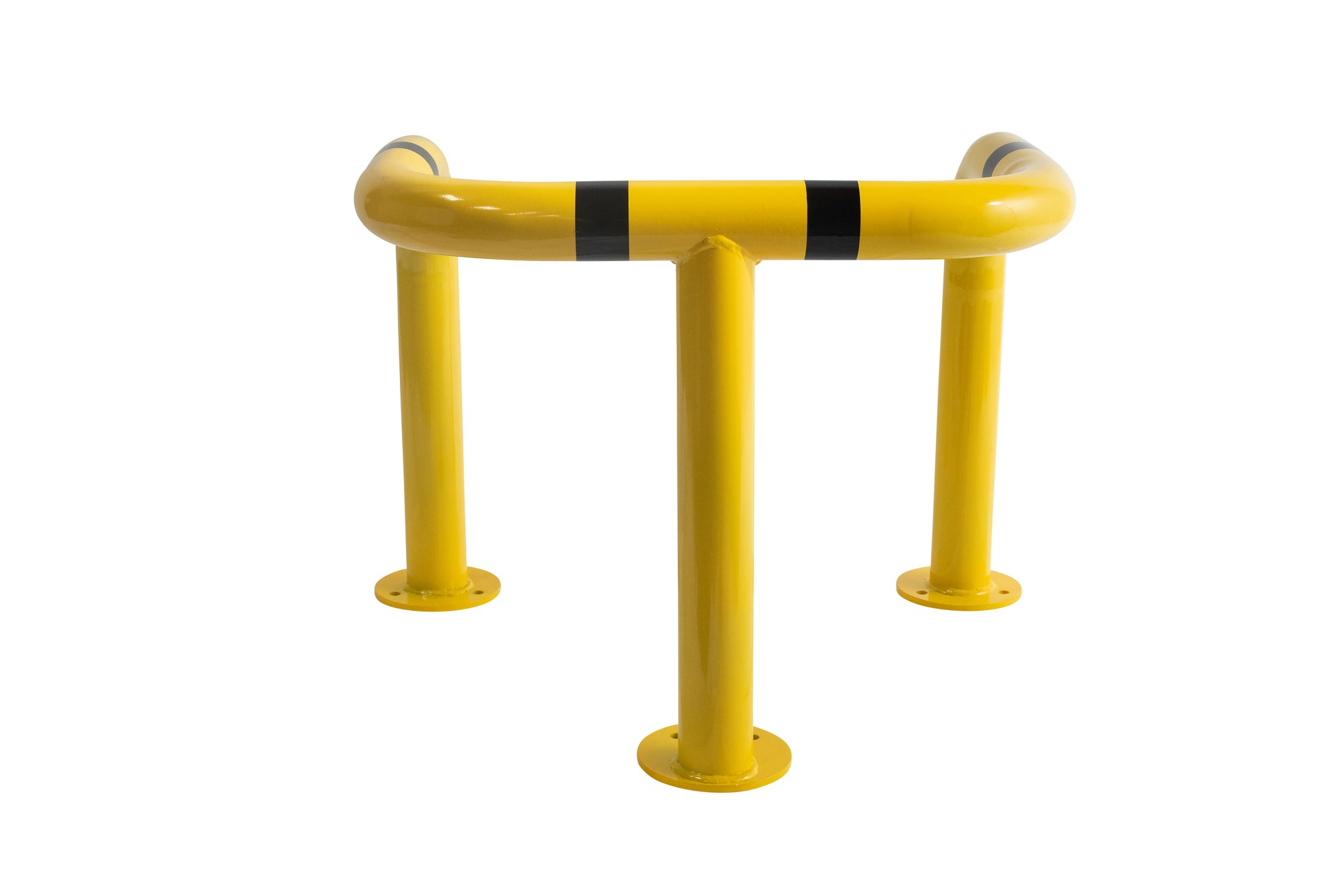 Dank der Pulverbeschichtung in RAL 1018 (Gelb) und der auffälligen schwarzen Warnmarkierung erhöhen diese Bügel die Sichtbarkeit und tragen so aktiv zur Unfallvermeidung bei.