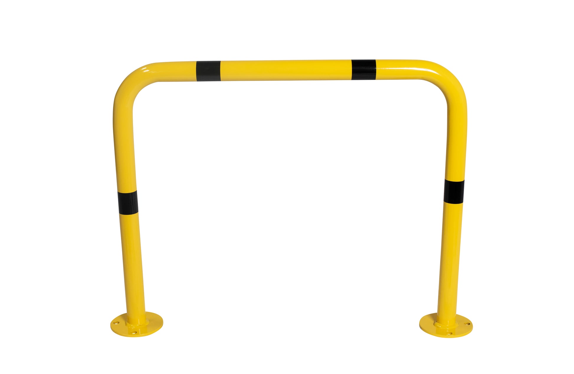 Für maximale Sicherheit sind die Bügel in RAL 1018 (Gelb) grundiert und pulverbeschichtet. Ergänzt durch eine schwarze Warnmarkierung wird die Sichtbarkeit deutlich erhöht, wodurch potenzielle Gefahrenstellen schnell erkannt werden können.